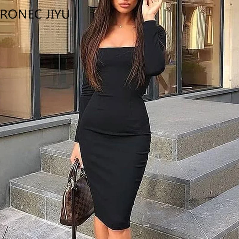 Robe moulante à manches longues et encolure carrée Robe noire élégante